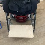 The footplate of a ReTurn sit-to-stand aid was too low for a child so a simple wooded platform was made to achieve the required height.