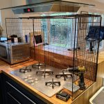 The parents of a child with autism need to prevent her from leaning over the kitchen counter and touching the hot stove. A three-sided guard was added.