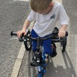 A child with cerebral palsy has toppled his tricycle when turning the handlebars too sharply. A bracket was added to restrict the amount that they can be turned.
