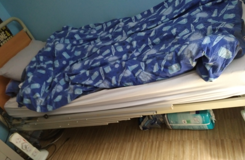 A new set of collapsible half-length rails was constructed using aluminium box section with a spring loaded plunger catch fitted to the bed head rather than at the bottom as was the case with the original rails. This resulted in the top “grab” rail being much firmer than on the original rails, allowing him to reposition himself in bed. To improve handling and cleaning, the rails were clear anodised. The anodising was carried out free of charge to Remap by Duncan-Lynch Precision Tools of Wokingham.