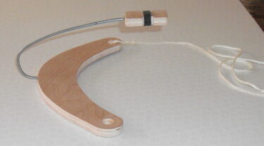 A simple chest-mounted support presents the mouthpiece at a convenient position. The stiff wire arm can be easily adjusted to an optimum position.