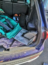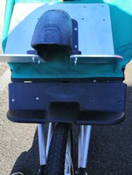 The existing footplate was removed and a new one constructed from folded aluminium sheet plus a 3-D printed wheel covering that were bolted to the buggy frame. It took a couple of attempts to get the length right for the child’s legs and feet. This is fixed and not adjustable.