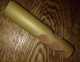 Most of us are familiar with foam cutlery tubes – and it is possible to buy a size that has an approx 6mm bore down the middle. What we then did is mark the finger positions, and then sculpt indentations precisely where they are required. Whilst a craft knife or sandpaper could be used to do this, a Dremel with a sanding drum attachment allows rapid, accurate, neat and gradual sculpting until the best possible shape and depth of grip is found.