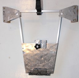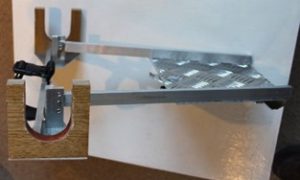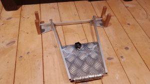 Our volunteer engineer Paul designed a ‘Pushchair Link’ that attaches to the wheelchair footplate and secures safely to the pushchair rear axle with a bespoke bracket.