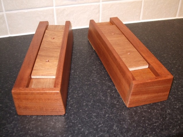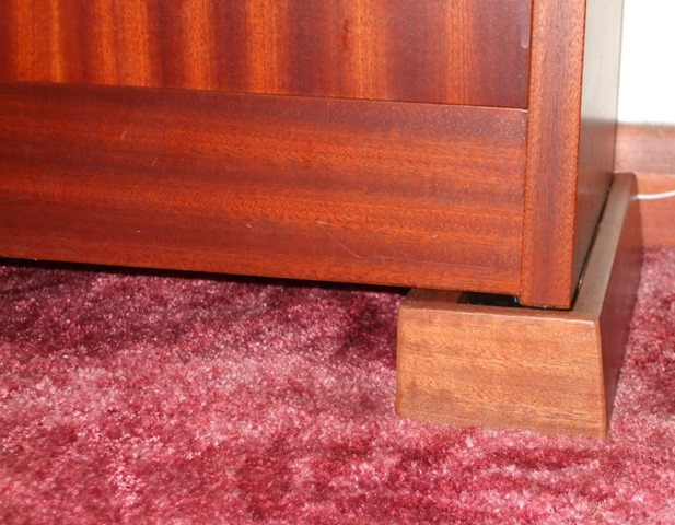 50mm high blocks were made from layers of plywood and faced with mahogany to match the piano.
